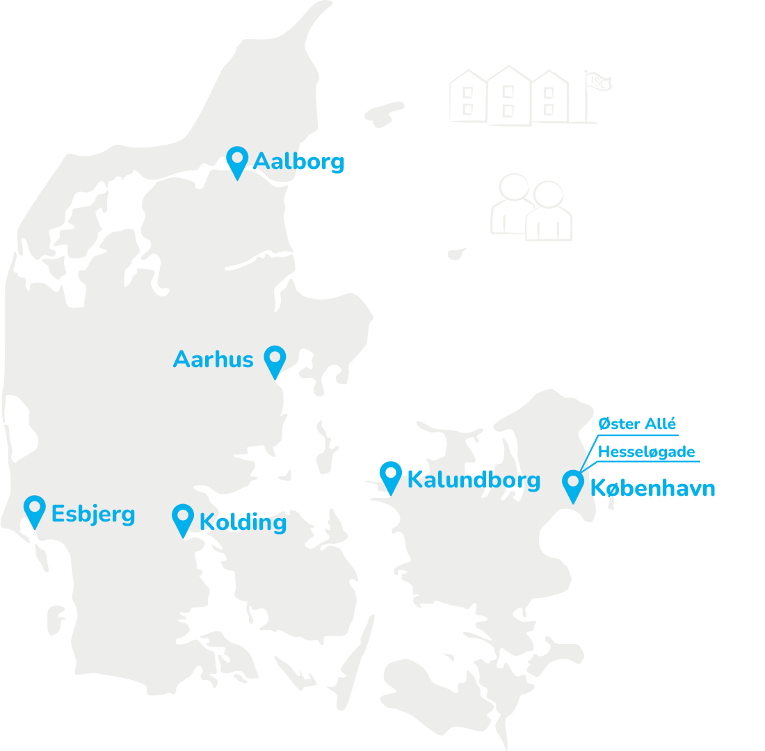 Vi arbejder projektorienteret, og projektgrupper sammensættes ofte på tværs af vores 7 kontorer.